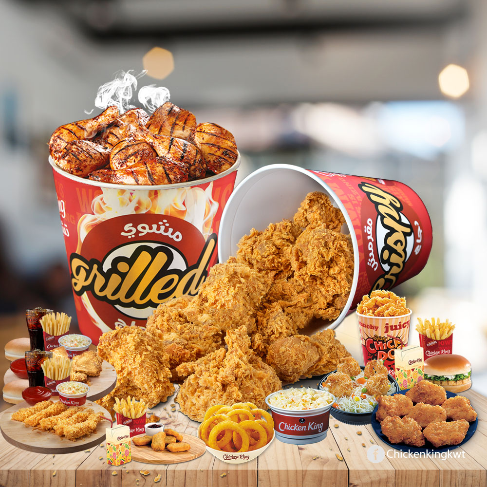 21قطعة من الدجاج وكلوسلو (كبير)وبطاط (كبير) و 10 صمون وبيبسي بحجم 2.25لتر متوفر دجاج حار وعادي ويكفي لعدد 10 اشخاص